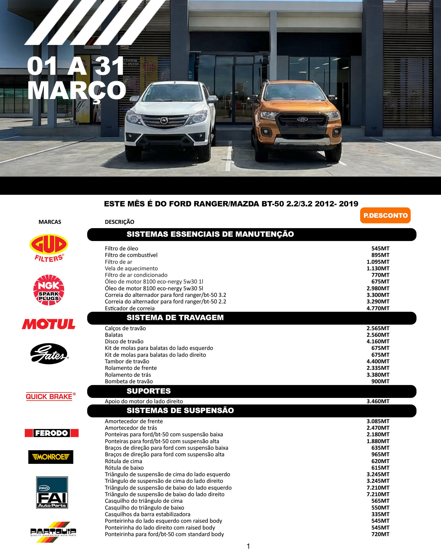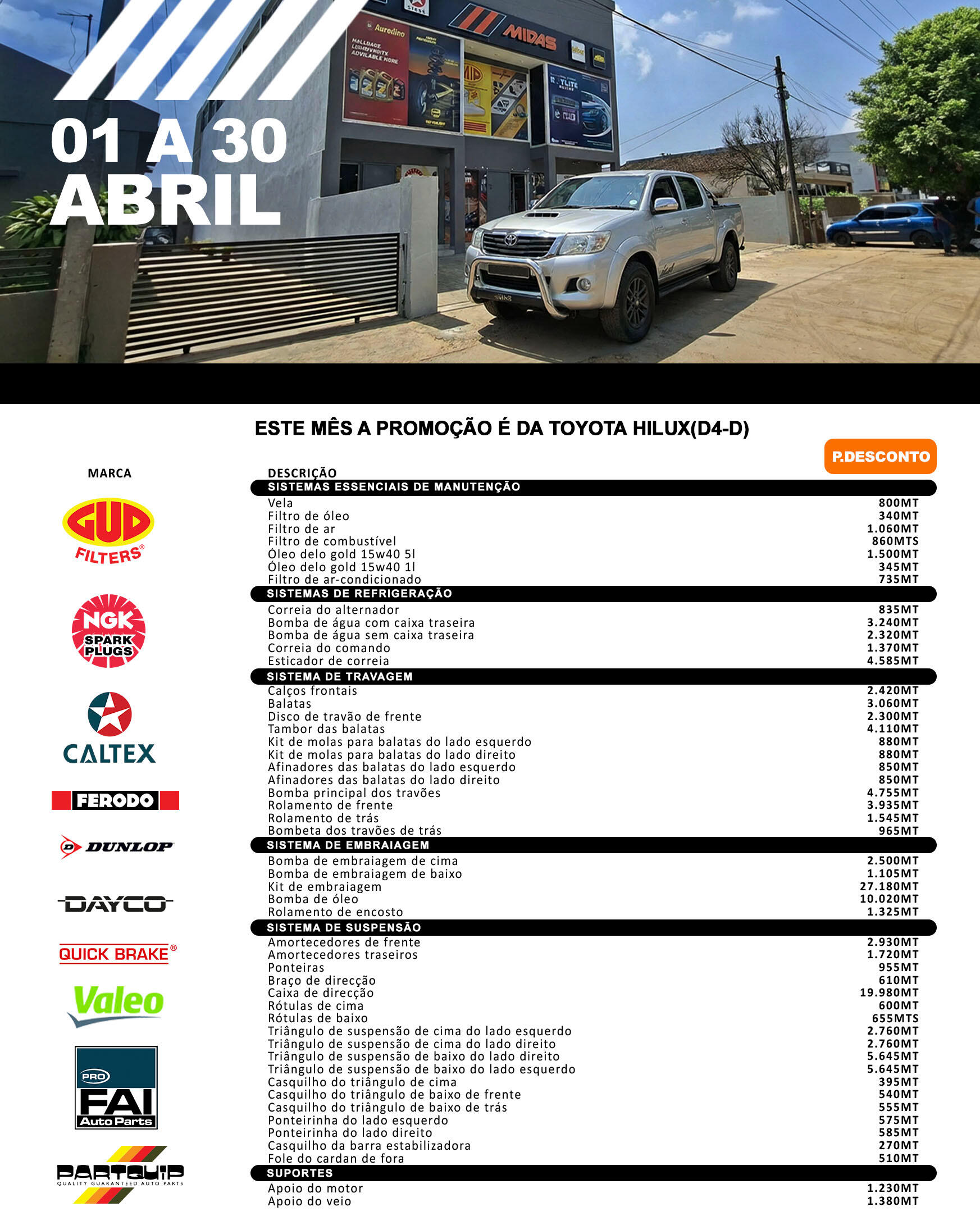 Produtos, preços e stock.